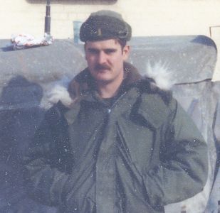 After graduating from the Armor Officers Basic Course, at Fort Knox, Kentucky in March, 1979, I received orders for overseas duty with the 3d Armored Division in the Federal Republic of Germany. Between April, 1979 and March, 1982 I served successively as Platoon Leader, 3d Platoon, B Company, 3d Battalion, 33d Armor Regiment, as that battalion's heavy mortar Platoon Leader, and Executive Officer for the Brigade Headquarters and Headquarters Company. Colonel Gordon R. Sullivan, future Army Chief of Staff, was the Brigade Commander during my tour as HHC Executive Officer. That's me early in my time as Mortar Plt Ldr after clearing my ammo account at Grafenwoehr Training Area.